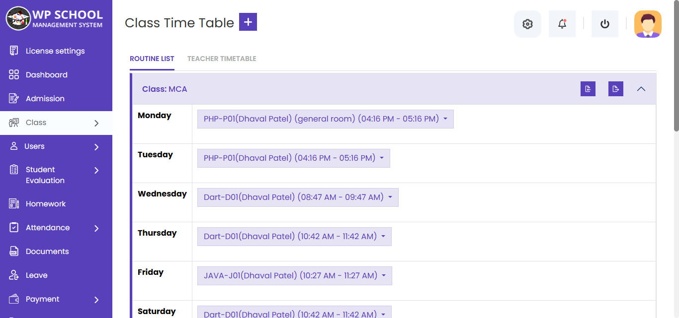 If you provide a classroom while adding the class routine, it will be displayed in the class routine list. This helps in easily identifying the location of each scheduled class.